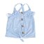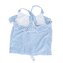 Dívčí tílko na ramínka a překřížením na zadní straně. Tílko má kolem lemu volánek, je doplněno o knoflíky a na spodní straně je mašle. V bílé barvě s modrými proužky. prečítať celé