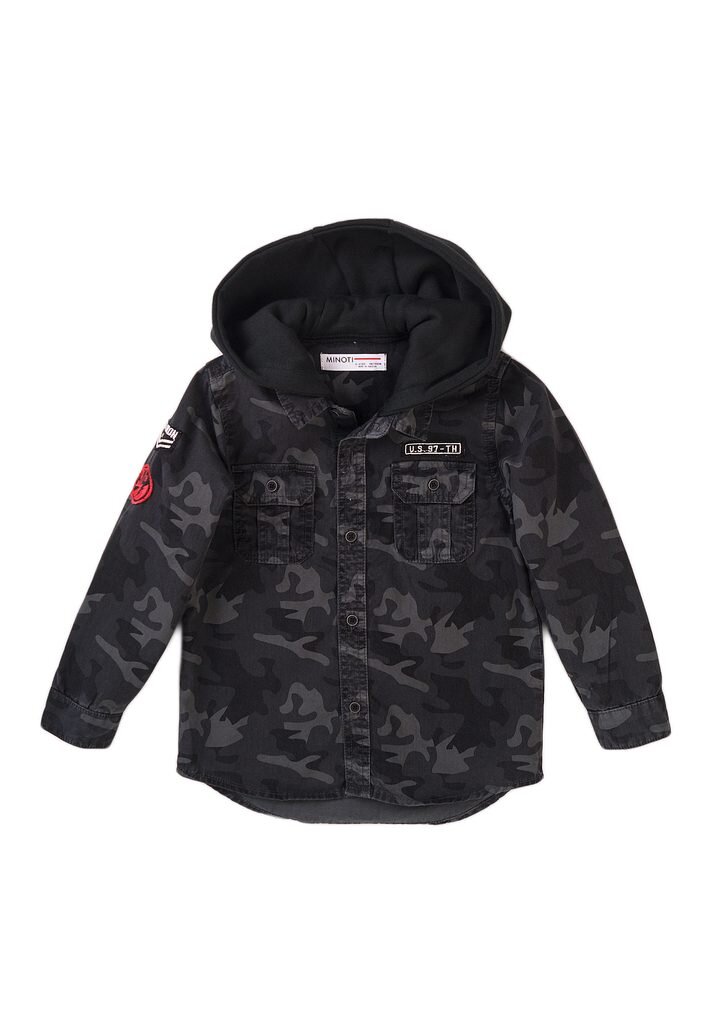 Košile chlapecká maskáčová s kapucí, Minoti, Stereo 8, šedá - 116/122