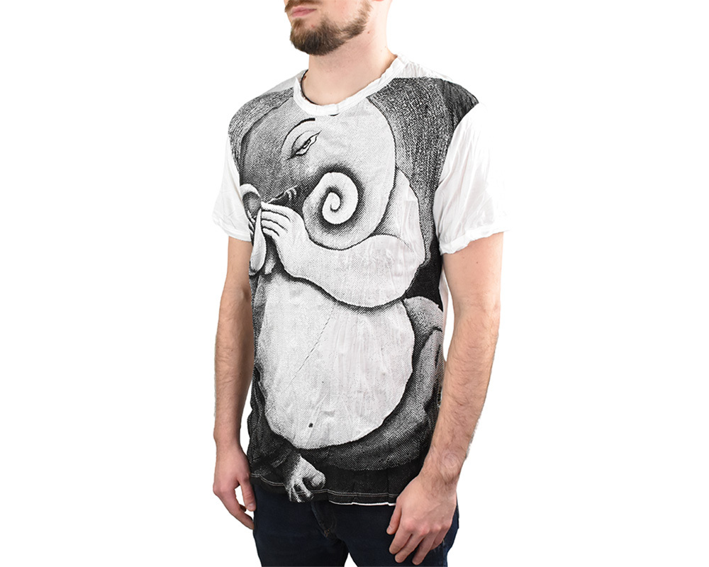 Pánské tričko SURE s krátkým rukávem a s potiskem. Tričko je v mačkané úpravě, materiál je velmi příjemný a poddajný.