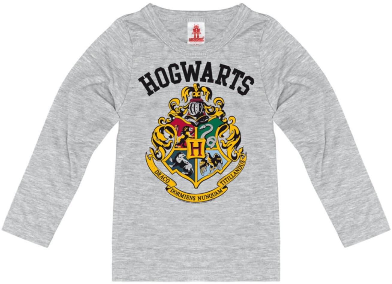 Šedé dětské tričko s dlouhým rukávem a motivem Hogwarts (Bradavice) z filmové ságy Harry Potter.