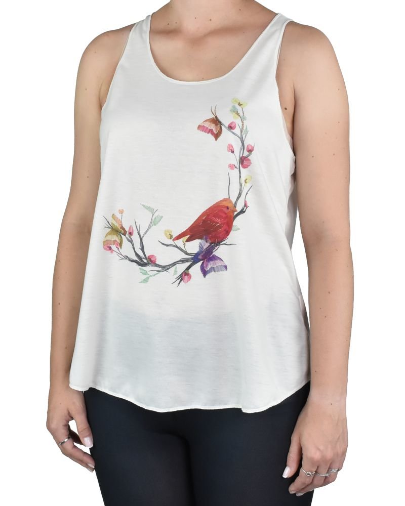 Dámské tílko YOGEE, krémové, ptáček s motýly