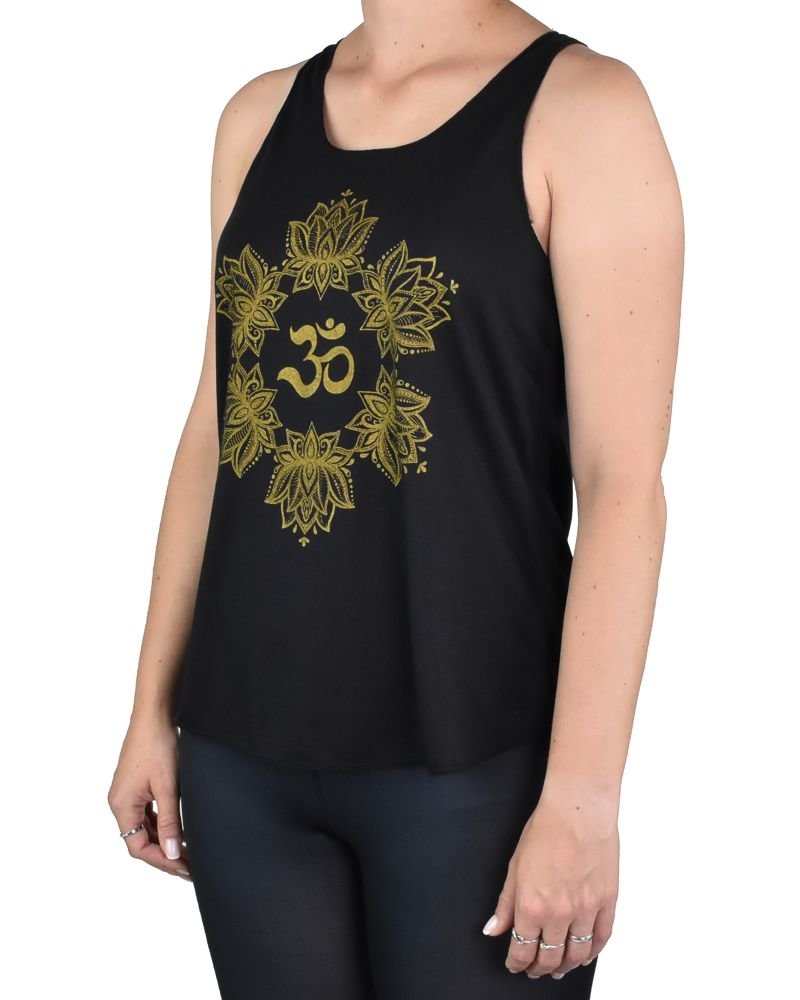 Dámské tílko YOGEE, černé, zlatý ÓM