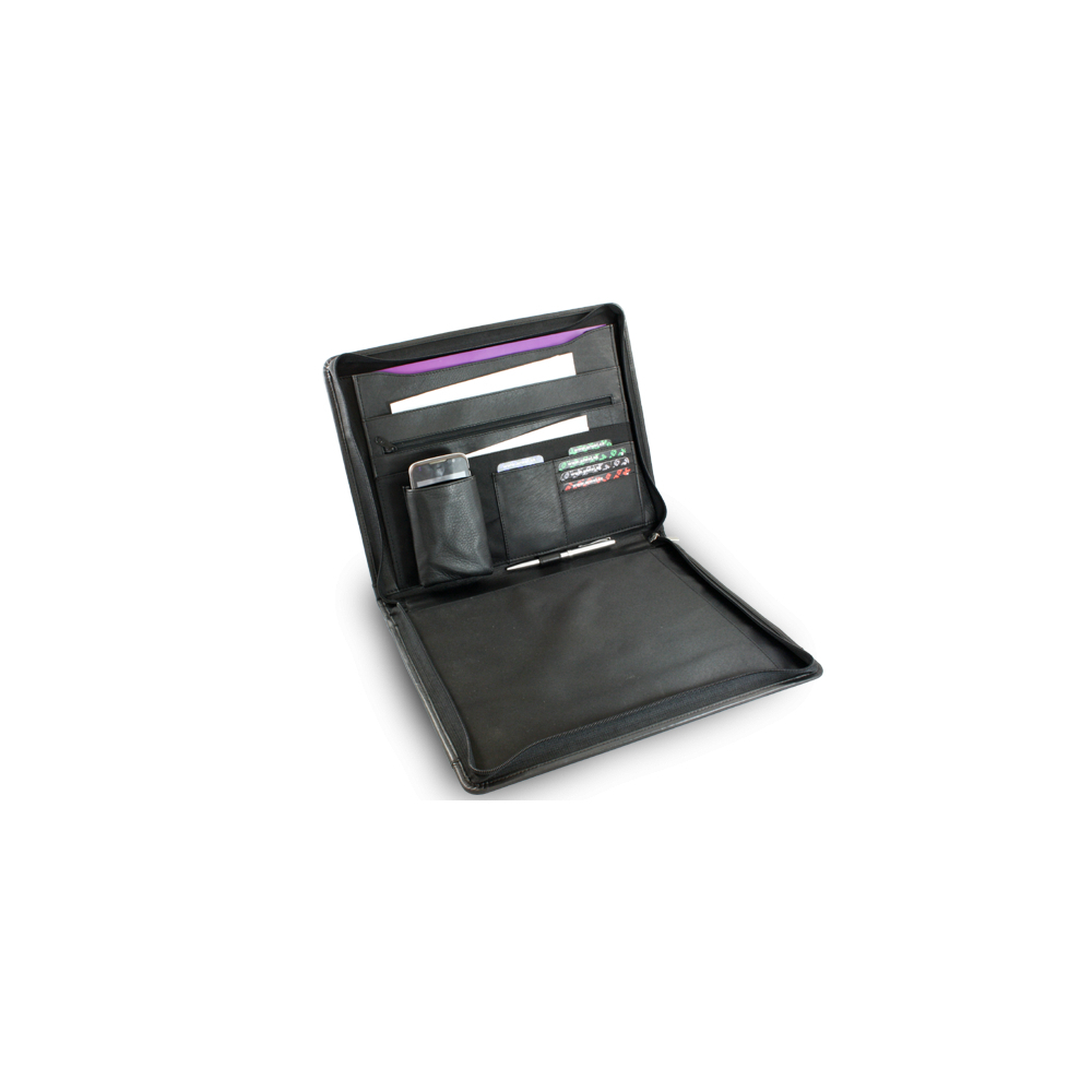 Kožená spisovka od české značky Arwel.Vlastnosti:• spisové zipové desky pro přichycení poznámkového bloku A4• 3 přihrádky na kreditní karty• vnitřní zipová kapsa• 2 menší kapsy• 2 velké kapsy• vnitřní semišový podklad na pravé psací straněMateriál: pravá hovězí kůže (NDM)