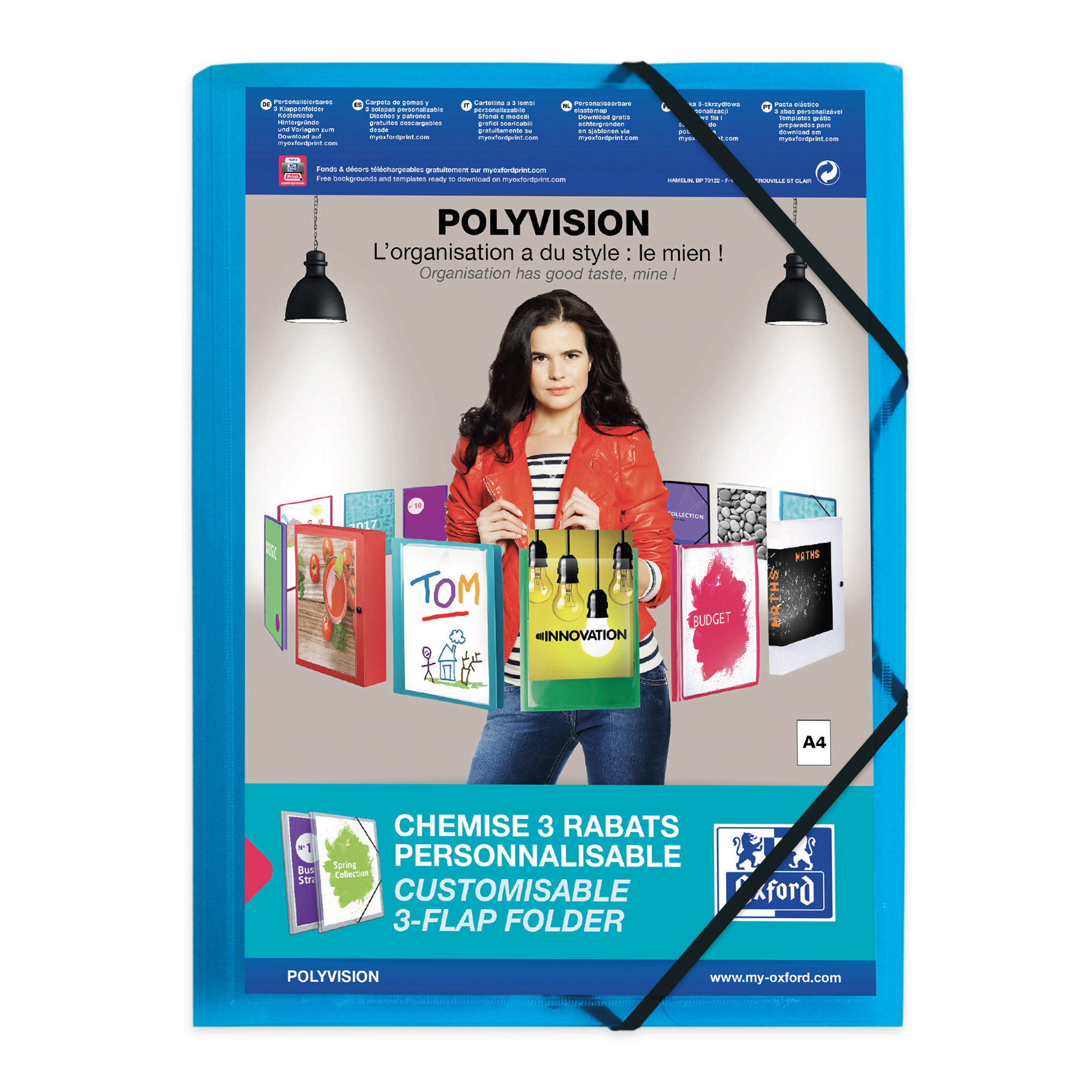 Elba, Tříchlopňové desky s kapsou Polyvision, PP, A4, modrá