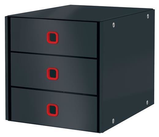 Box s tromi zásuvkami je perfektný na ukladanie projektových dokumentov, faktúr, školských prác i dôverných materiálov. Vďaka unikátnej patentovanej konštrukcii sa ľahko skladá a rozkladá, čo šetrí miesto, ak ho práve nepotrebujete používať. Otváranie zásuviek je vďaka červenému otvoru veľmi pohodlné a rýchle. Vysokokvalitný laminovaný kartón s recyklovaným podielom zaručuje pevnosť a dlhú životnosť produktu, čo oceníte doma aj v kancelárii.