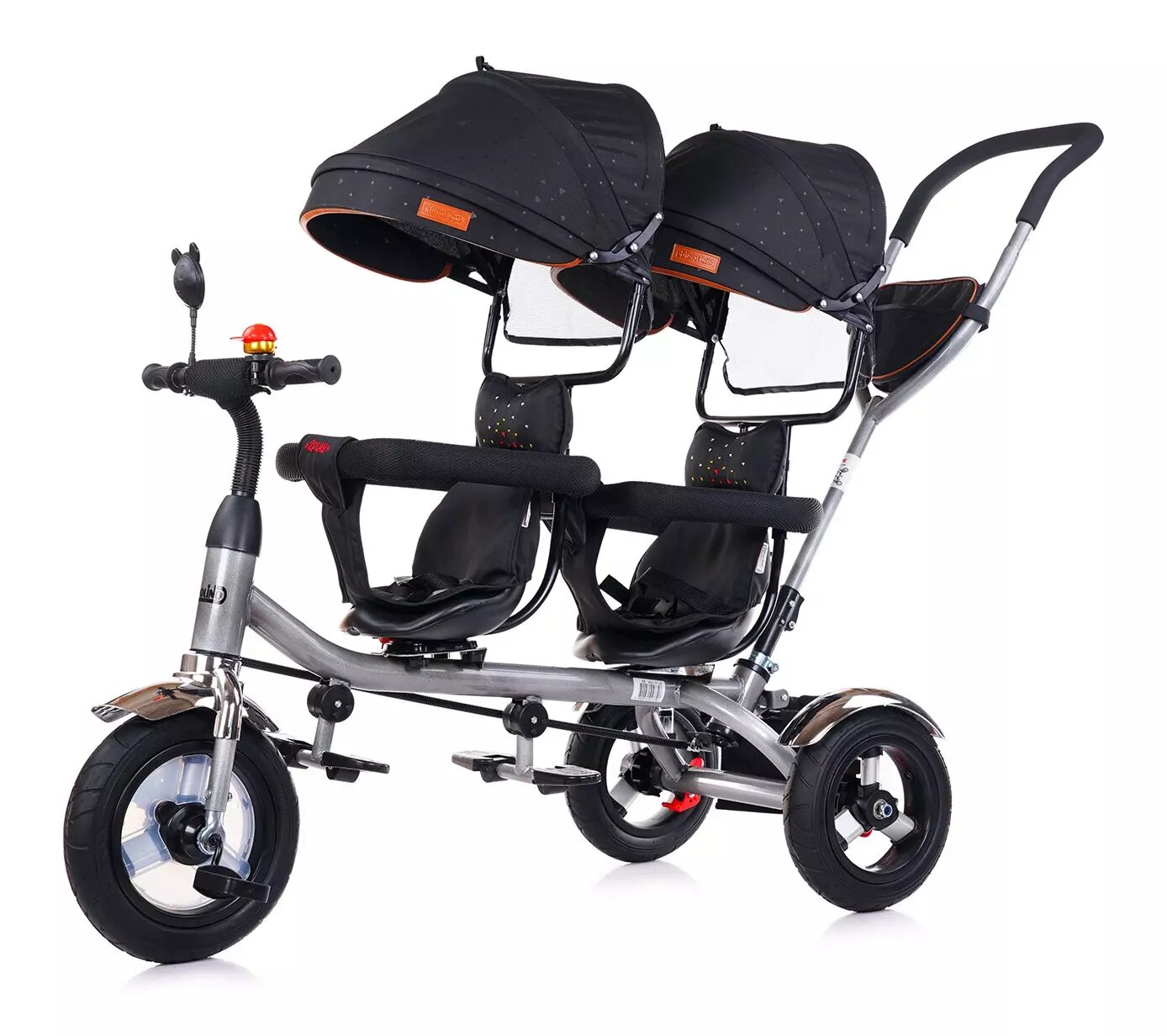 CHIPOLINO Tříkolka pro dvojčata 2Play Raven