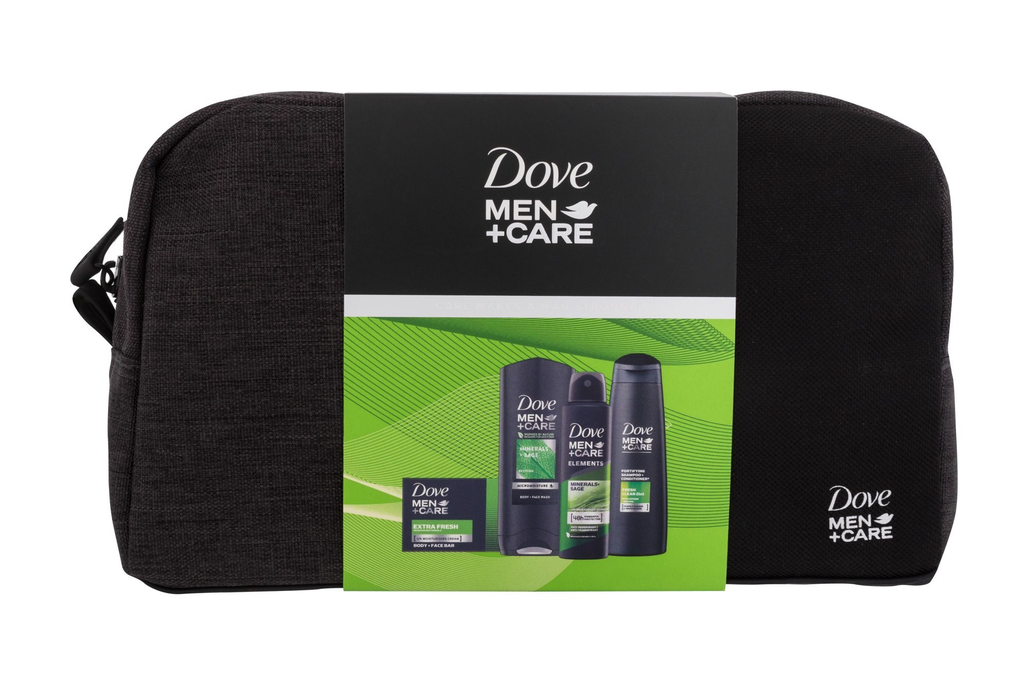 Dove Men + Care antiperspirant Men+Care Minerals+Sage 150 ml + sprchový gel Men+Care Mineral+Sage 250 ml + šampon Men+Care Fresh Clean 2in1 250 ml + tuhé mýdlo Men+Care Extra Fresh 90 g + kosmetická taštička