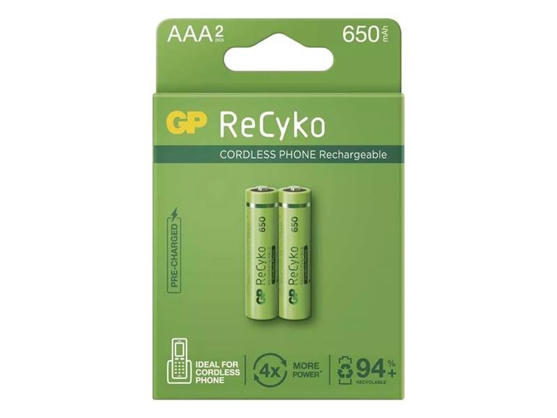 Baterie AAA (R03) nabíjecí 1,2V/650mAh GP Recyko Cordless 2ks Skvěle se totiž hodí pro fungování bezdrátových telefonů i dalších zařízení, kde dochází k častému nabíjení, velikou výhodou této baterie je totiž odolnost proti přebíjení. Baterie GP ReCyko jsou vyrobeny tak,...