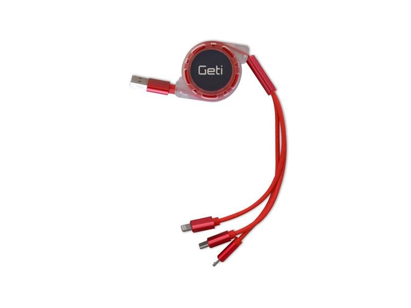 Kabel Geti GCU 02 USB 3v1 červený samonavíjecí