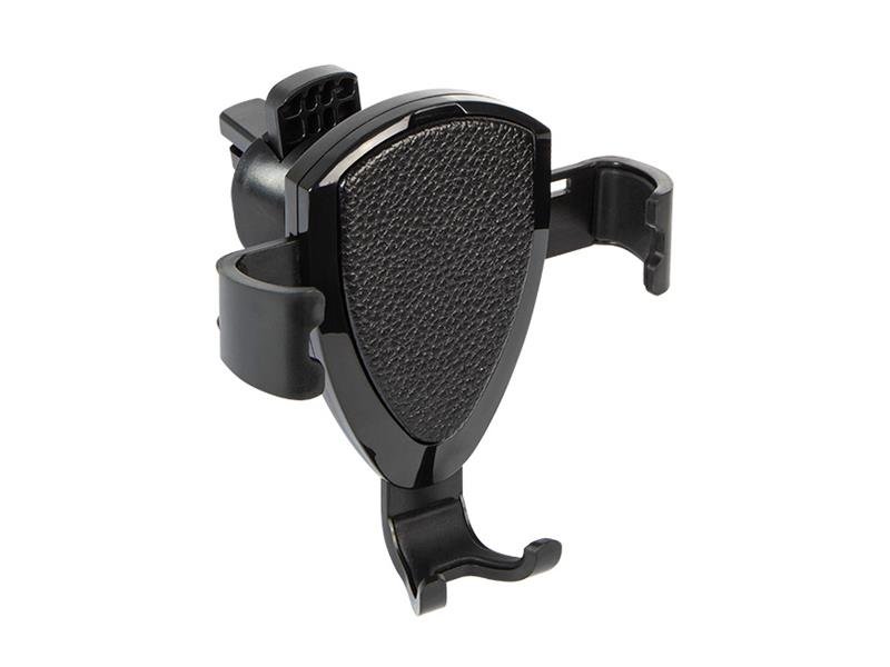 Gravitační držák do auta, který se montuje na ventilační mřížku automobilu. Výrobek se velmi snadno používá, stačí na něj položit telefon a čelisti se automaticky zavřou. Má trojúhelníkovou strukturu zajišťující stabilitu za jízdy, velké možnosti nastavení a gumové podložky. Navíc speciální výřez, který umožňuje připojení nabíječky.