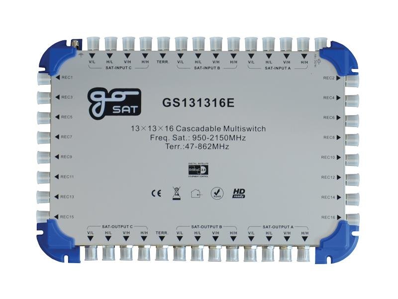 Jedná se o multipřepínač pro distribuci pozemních a satelitních signálů ze 3 satelitních pozic (12 polarit) pro 16 (GS131316E) účastníků. Multipřepínače jsou vybaveny výstupy pro zapojení do kaskády. Multipřepínač je ovládán ze satelitního přijímače příkazy DiSEqC 2.0. Multipřepínač je napájen pomocí externího zdroje.