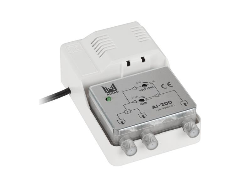 Anténny zosilňovač ALCAD AI-200 je ideálnym riešením pre všetkých, ktorí chcú získať silnejší a stabilnejší signál pre pozemnú televíziu a rádio. Vďaka samostatnému zosilneniu pre VHF a UHF pásmo zabezpečí výborný obraz aj zvuk aj v menej priaznivých signálových podmienkach.