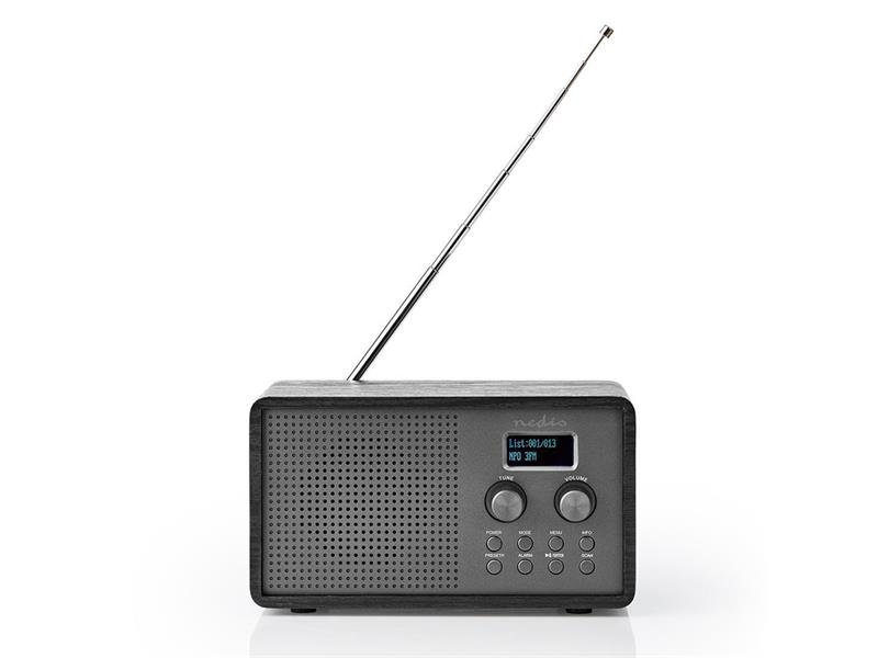 Toto Nedis DAB+/FM rádio má ve výbavě všechny funkce digitálního rádia, jako je čistý a kvalitní zvuk, velký počet dostupných kanálů a jednoduché procházení seznamem názvů, abyste snadno našli určité stanice. Rádio má prostor pro 20 přednastavených stanic, takže si své oblíbence můžete hned uložit. Toto stolní rádio kombinuje stylový kryt připomínající dřevo s tenkým předním panelem, takže zapadne do každého interiéru. Je vybaveno vestavěnou baterií, takže hudbu můžete poslouchat i na cestách. AUX vstup a integrovaný budík činí z tohoto zařízení multifunkční rádio, které je dostatečně kompaktní ke snadnému přenášení. Je-li vestavěná baterie vybitá, můžete rádio napájet prostřednictvím USB kabelu (adaptér není součástí) a užít si nepřetržitou radost z poslechu.