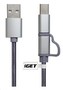 Kabel IGET G2V1 USB/Micro USB/USB-C TYPE 1m stříbrný Univerzální nabíjecí a datový kabel 2v1, který díky svým prodlouženým koncovkám dokáže napájet všechny zařízení s microUSB i USB-C, které potřebují prodloužené varianty konektorů (například odolné mobilní telefony). Kabel...