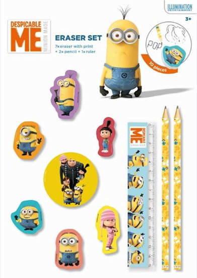 Set obsahuje 7 gum s motivem Mimoni, 2 tužky a pravítko prečítať celé