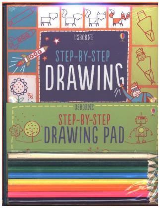 Usborne Step-by-Step Drawing, w. Drawing Pad and 8 Pencils (anglicky)
