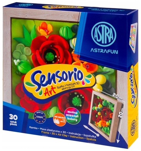 Zestaw Mas Plastycznych Sensorio Art z Ramką ASTRA FUN - 30 KolorówOtwórz drzwi do świata kreatywności z zestawem Sensorio Art! Ten wyjątkowy zestaw zawiera wszystko, czego potrzebujesz, aby stworzyć niepowtarzalne dzieło sztuki 3D z masy plastycznej:•Ramka 20x20 cm – idealna do zaprezentowania...