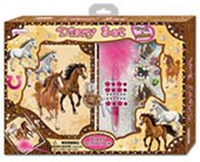 Set obsahuje diář se zámkem a klíči, zdobené pero s peřím, arch dekorativních šperků a nálepky prečítať celé