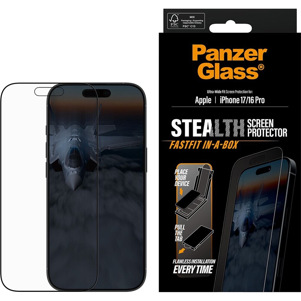 PanzerGlass® Stealth sklo Apple iPhone 17/16 Pro s bezprašným aplikačním boxem