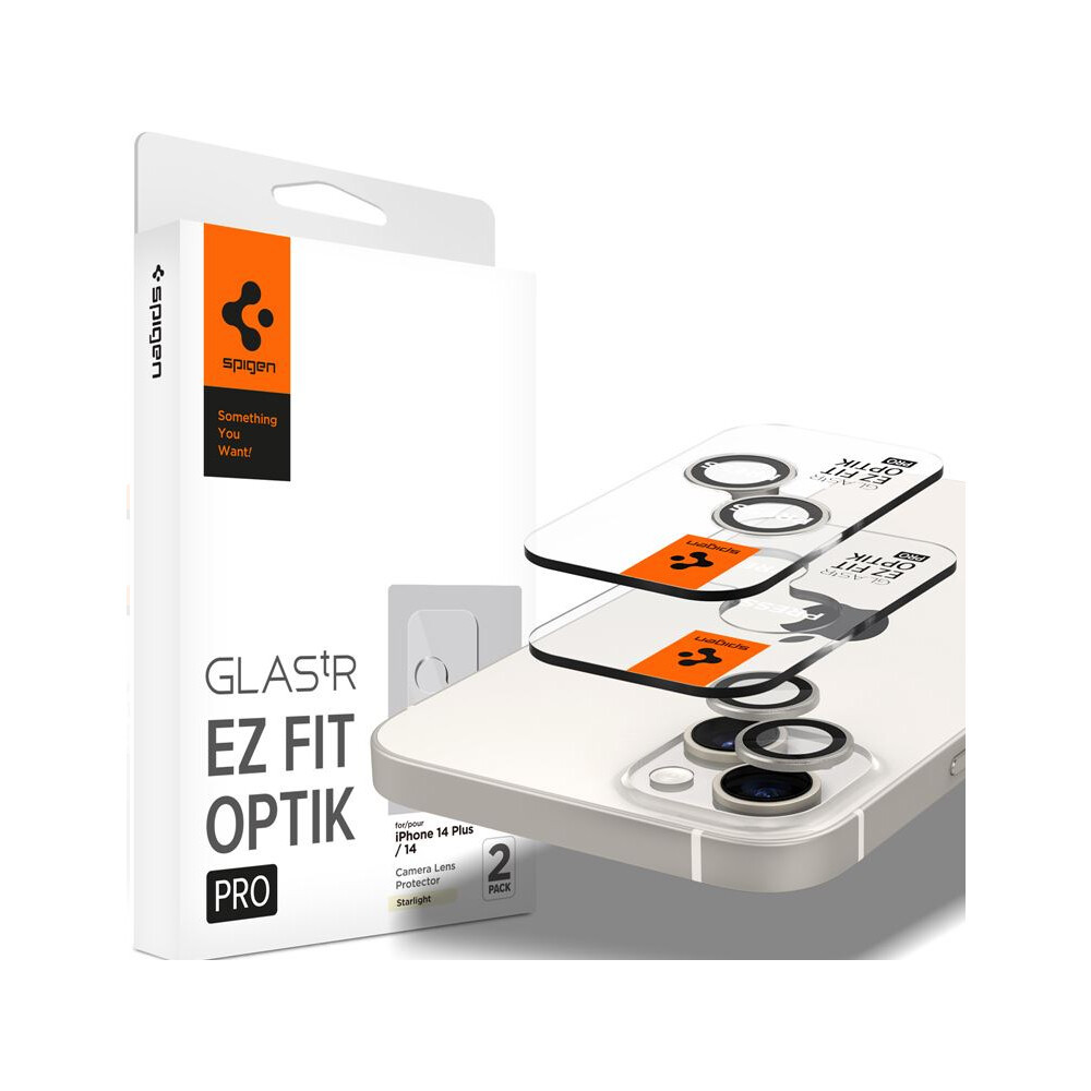Spigen Glass EZ Fit Optik Pro 2 Pack tvrzené sklo na fotoaparát iPhone 14/iPhone 14 Plus bílé