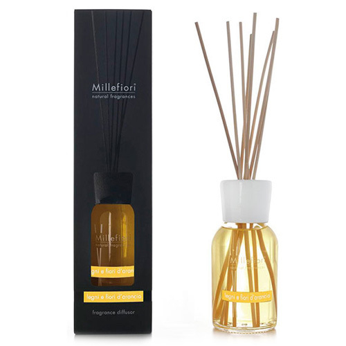 Skleněný difuzér Millefiori Milano Natural, 500ml/Dřevo a pomerančové květy