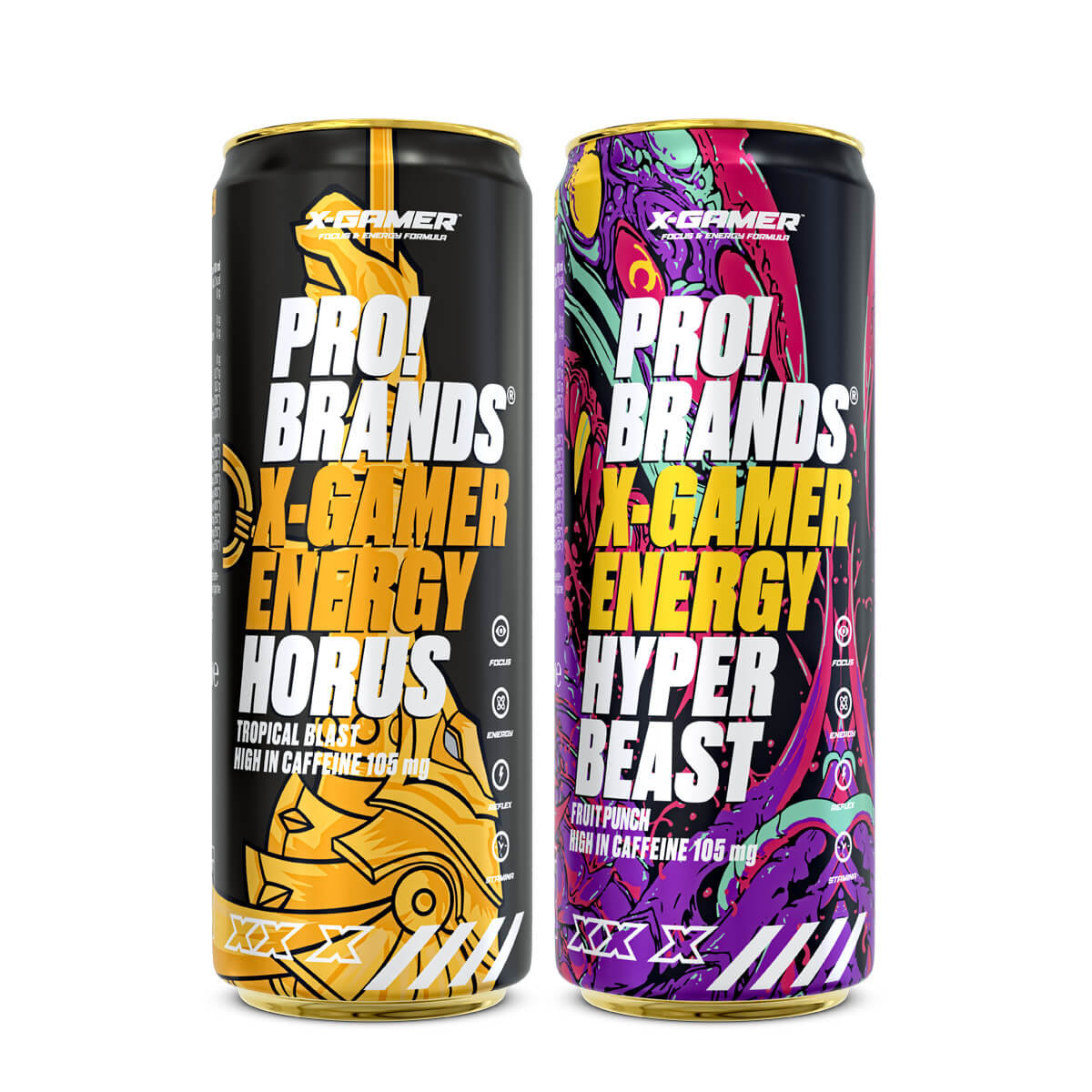 Pro! Brands X-GAMER Energy - buď hráč, nebuď lamaProBrands X-Gamer Energy je sycený ochucený energetický nápoj, pasterizovaný. Se sladidly a s vysokým obsahem kofeinu (32 mg/100 ml). X-Gamer je silný "energeťák" pro hráče počítačových her a pro sportovce. Obě verze X Gameru : Horus i Beast...
