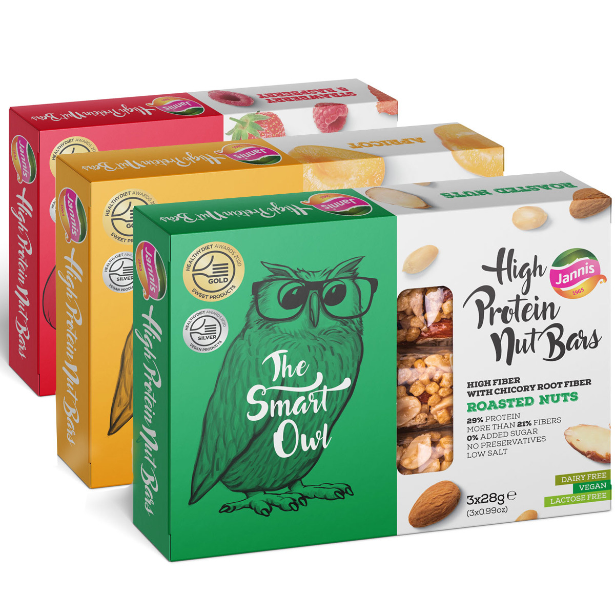 Jannis High Protein Nut Bars - Výherce evropské zákaznické soutěžeProtože sovy vědí, co je dobré. Pokud to má skvělé složení a ještě to skvěle chutná, je to výhra. Oceníte to vy, ale také vaši mladší sourozenci, vaši rodiče a nebo vaše malé děti.Tyčinky High Protein Nut Bars vyhrály zlatou a...