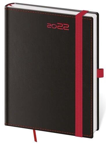 Diář 2022 týdenní B6 Black Red s poutkem na propisku