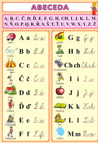 Přehledně zpracovaná česká abeceda s veselým obrázkem u každého písmenka pro snazší zapamatování. Tato pomůcka pomůže každému školákovi hravě zvládnout čtení i psaní. Obsahuje tiskací i psací písmenka. Ilustrace od Petra Kopla. prečítať celé