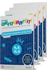 Zestaw składający się z Ortograffiti. Pisownia wyrazów z RZ i Ż. Zeszyt ćwiczeń dla młodzieży w wieku 13-18 lat, Ortograffiti. Pisownia wyrazów z Ą i Ę, JI i II. Zeszyt ćwiczeń dla młodzieży w wieku 13-18 lat, Ortograffiti. Pisownia wyrazów z CH i H. Zeszyt ćwiczeń dla młodzieży w wieku 13-18 lat, Ortograffiti. Pisownia wyrazów z Ó i U. Zeszyt ćwiczeń dla młodzieży w wieku 13-18 lat