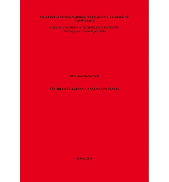 Vysokoškolská učebnica ,,Všeobecná hygiena a analýza potravín je určená pre študijný program Všeobecné veterinárske lekárstvo Univerzity veterinárskeho lekárstva a farmácie v Košiciach. Predložená vysokoškolská učebnica je napísaná v rozsahu 162 strán s ilustráciou obrázkov v počte 32 a tabuliek...