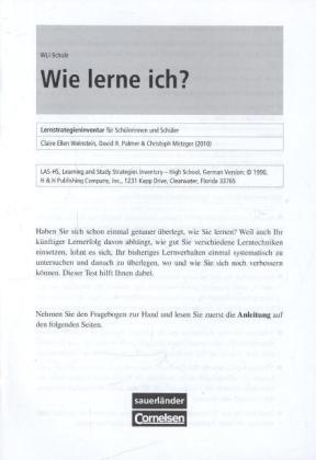 Wie lerne ich? Lernstrategien-Inventar für Schülerinnen und Schüler (německy)