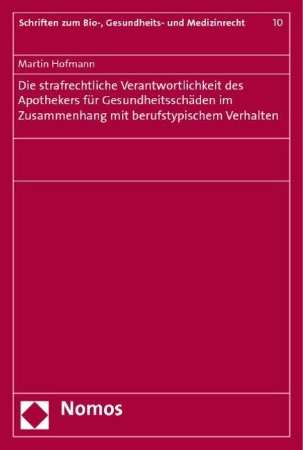 Die strafrechtliche Verantwortlichkeit des Apothekers für Gesundheitsschäden im Zusammenhang mit berufstypischem Verhalten (německy)