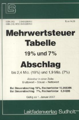 Mehrwertsteuer-Tabelle, 19% und 7% Abschlag (německy)