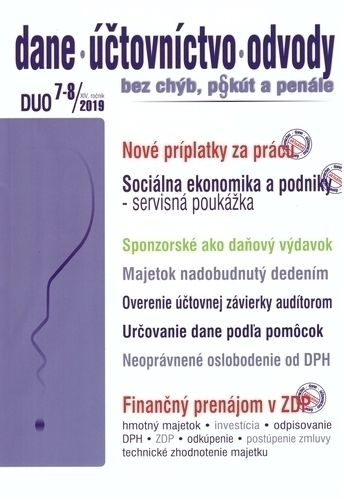 Príplatky za prácu; Sociálna ekonomika a sociálne podniky: servisná poukážka; Finančný prenájom v ZDP; Otázky z praxe: finančný prenájom; Príplatky za prácu; Predaj za symbolickú cenu a vplyv na DPH; Neziskové organizácie a register účtovných závierok; Vysporiadanie daňovej povinnosti za mŕtveho...