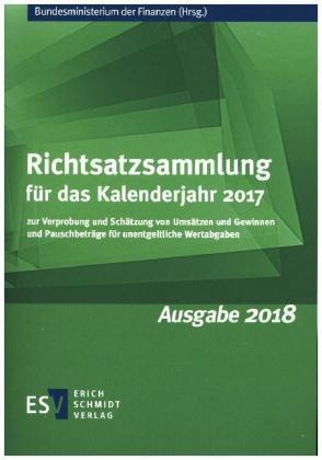 Das Bundesministerium der Finanzen hat bundeseinheitliche Richtsätze zur Verprobung und Schätzung von Umsätzen und Gewinnen für das Kalenderjahr 2017 sowie zu den Pauschbeträgen für unentgeltliche Wertabgaben für die Kalenderjahre 2017 und 2018 herausgegeben. Diese Broschüre enthält die amtliche Richtsatzsammlung in übersichtlicher und praxisgerechter Form.