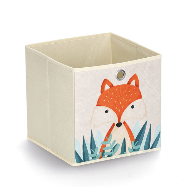 ZELLER Dětský úložný box textilní, béžový, motiv liška 28x28x28cm