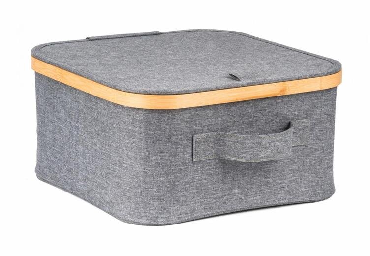 Úložný box G21 30 x 30 x 15 cm, bambusový s víkem, šedý