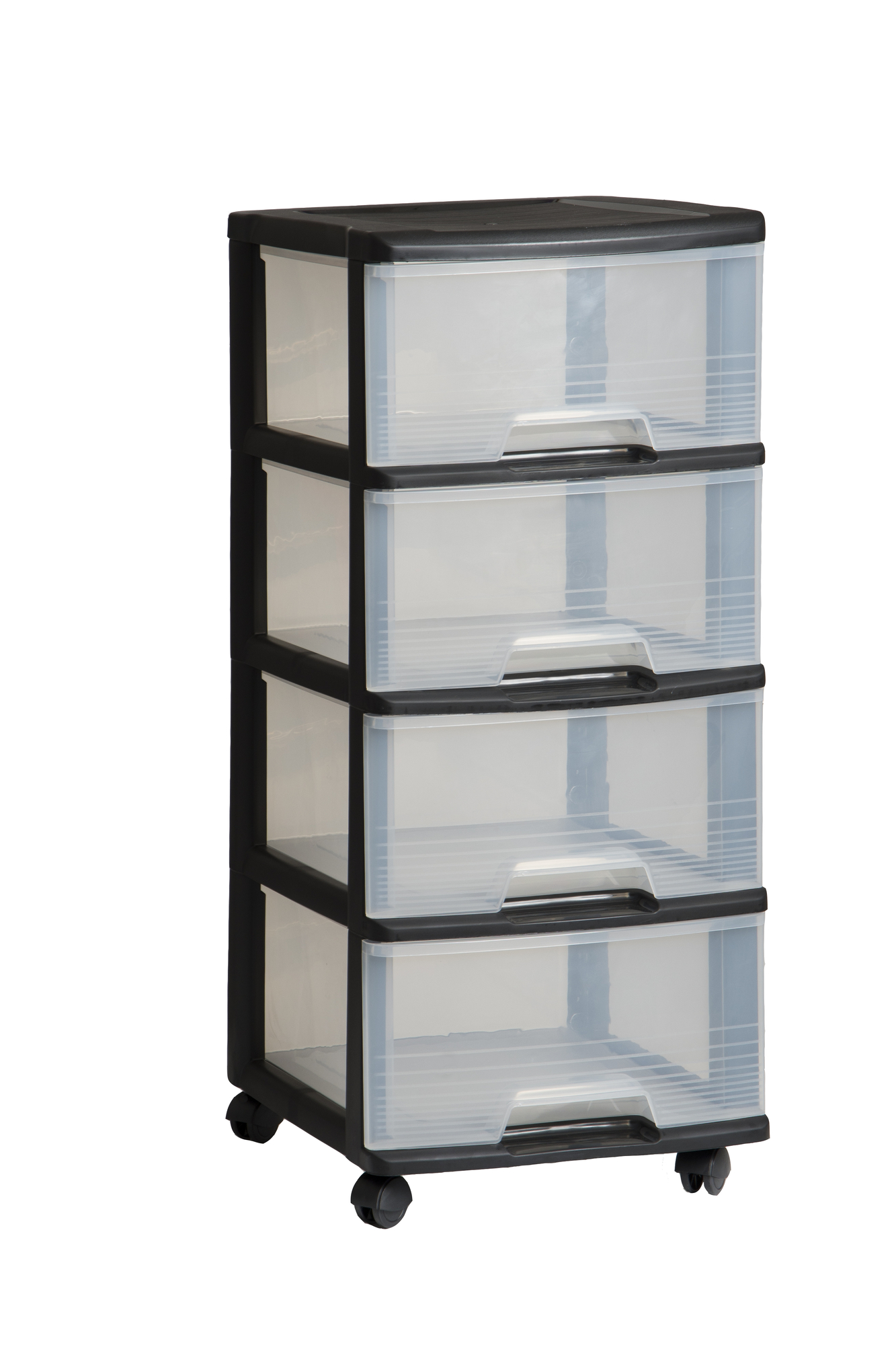 regálek se šuplíky černý 4x20l;370x390xH805;;barva:černá, plast; prečítať celé