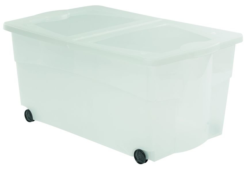 Úložný box na kolečkách s víkem otevíratelným z obou stran. Barva- transparentní. Parametry - objem 100 l. Rozměry - 78x49x37 cm. prečítať celé