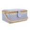 Polstrovaný box/kazeta s přihrádkou vám pomůže přehledně uložit všechny vaše šicí potřeby nebo jiné drobnosti – potřeby na vyšívání, navlékání korálků, drátkování a jiné kreativní vyrábění... Uvnitř se nachází odnímatelné patro z průhledného pevného plastu, které má tři menší a jednu větší...
