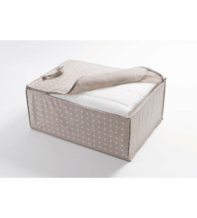 Stylový úložný box RIVOLI na peřiny či textil. Vhodný také pro uložení přikrývek, polštářů, ložního prádla atd. Zapínání po celém obvodu pro snadné vložení objemných věcí.Úchyty po obou stranách pro snadnou manipulaci. Chrání uložené věci před nečistotami a prachem.Materiál - netkanná textílie....
