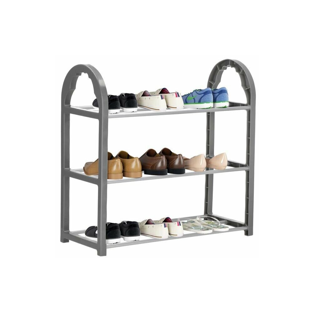 Praktický stojan na boty v šedé barvě se 3 policemi pro uložení až 9 párů bot. Umožní vhodně zařídit váš obývací pokoj nebo předsíň. Stabilní konstrukce, dlouhá životnost.15 cm široká rozestup mezi policemi vám umožní umístit na ně nízké boty a dokonce i vysoké zimní boty. Lehká konstrukce,...