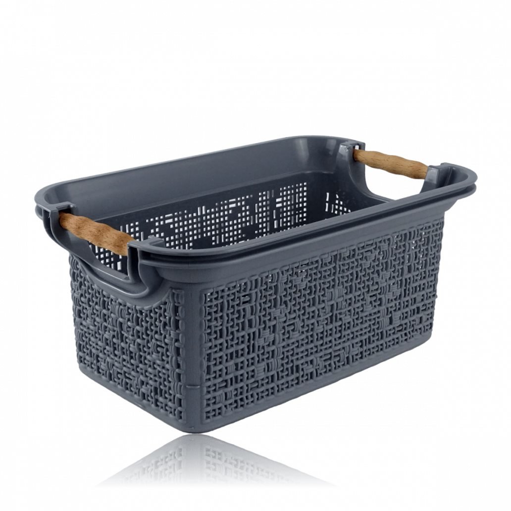 košík vyrobený z odolného plastu se strukturou lněné síťoviny s dřevěnými ručkami odolný proti poškrábání tento košík je moderním designovým prvkem do Vaší domácnosti, kanceláře, koupelny apod. rozměry 32 x 20 x 14 cm, objem 6 litrů barva antracit EAN prečítať celé