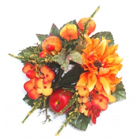 Venček leto/jeseň 785578A je perfektnou dekoráciou, ktorá prinesie do vášho interiéru atmosféru tepla a prírodnej elegancie. Vďaka kombinácii georgín, physalis a jablčiek vytvára jedinečnú harmóniu, ktorá poteší vaše zmysly a vniesť do priestoru krásu letných a jesenných farieb.
