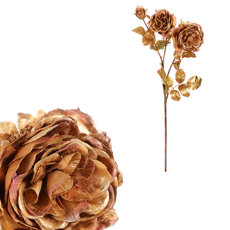 Oživte vaši vánoční výzdobu nezapomenutelnou atmosférou romantiky a elegance s touto umělou řezanou růží ve svátečním dekoru. Lvět ve zlatém dekoru včetně lístků, přináší do vašeho interiéru nádech luxusu a noblesy. Umělá květina zaručuje dlouhotrvající krásu a může být skvělým doplňkem na vašem stole, komodě nebo jiném viditelném místě. Užijte si dotek elegance a přenesení do pohádkového světa s touto úchvatnou rostlinnou dekorací.