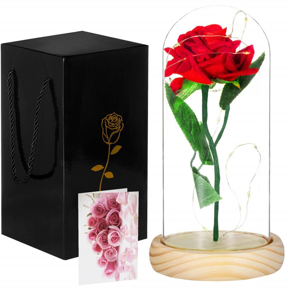 Tento elegantný kvet je bezúdržbový, čo znamená, že nepotrebuje žiadnu starostlivosť ani polievanie, no napriek tomu vyzerá úplne prirodzene a živo vďaka veľmi detailnému spracovaniu a realistickému vzhľadu. Ruža je umiestnená v skle s ochranným krytom, ktorý ju chráni pred poškodením a špinou, čím predlžuje jej životnosť. Súčasťou je aj jemné LED osvetlenie, ktoré jemne zvýrazní krásu kvetu a môže slúžiť ako decentná lampička a dekorácia zároveň. Vďaka tomu je tento produkt ideálnym darčekom pre každú príležitosť - či už chcete potešiť niekoho blízkeho, alebo si spríjemniť atmosféru vo svojom dome či kancelárii.
