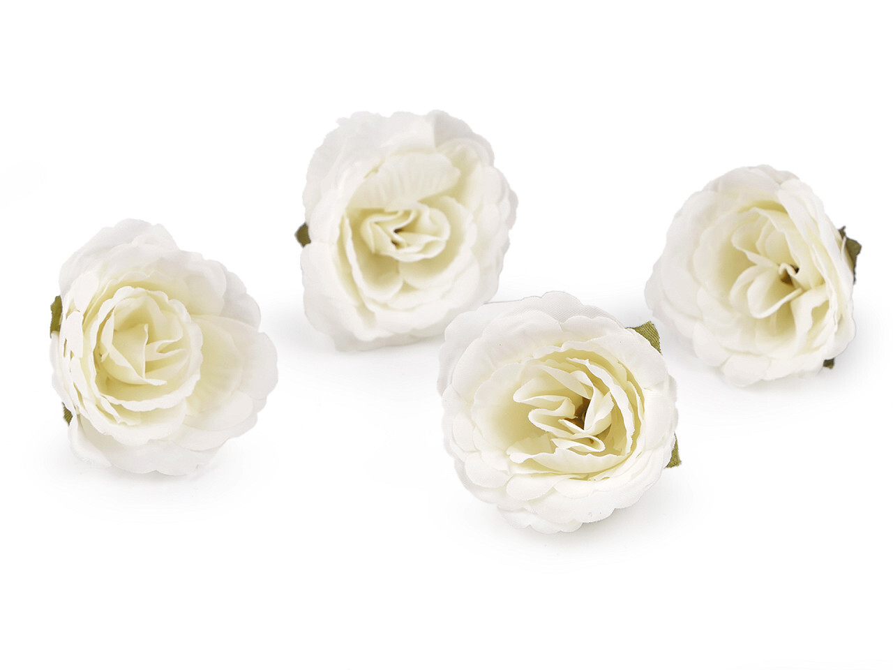 Umělý květ růže Ø5 cm - 12 ks - 1 krémová nejsvět.