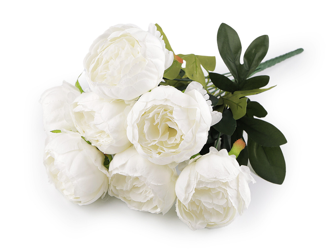 Umělá kytice pivoňka - 1 ks - 1 bílá