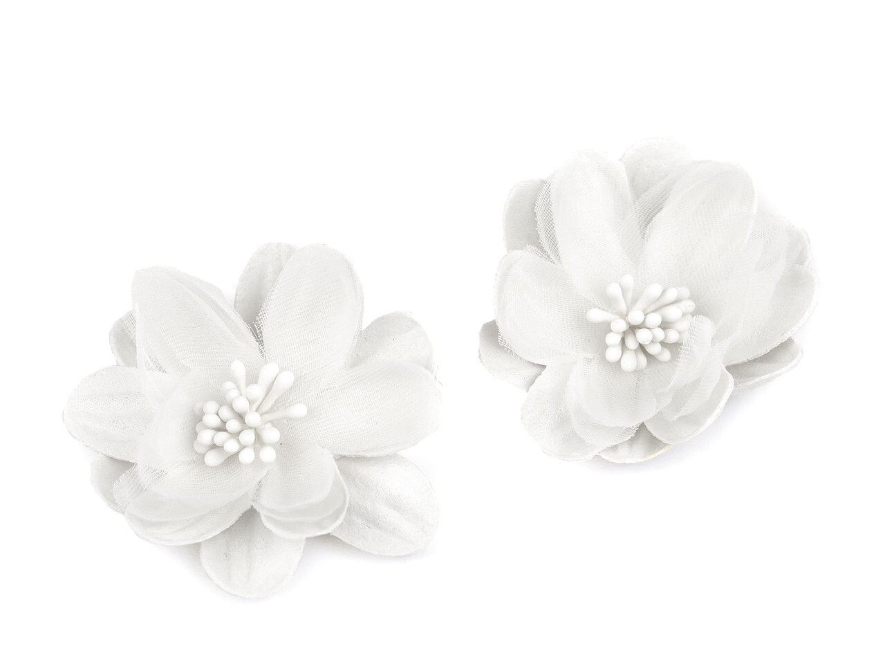 Textilní květ k nalepení Ø5 cm - 10 ks - 1 (Ø5 cm) bílá mléčná